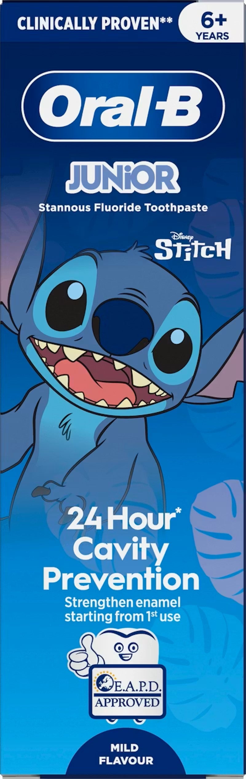 The Oral-B Junior 6+ Toothpaste is developed with dentists to help prevent cavities. Oral-B Kids 6+ Toothpastes are specially designed to protect teeth against acids from sugars in everyday food. For healthy and strong teeth, this sugar free toothpaste with mild mint is specially designed for grown-up juniors.